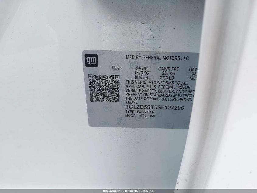 1g1zd5st5sf127206 - 2025 Chevrolet Malibu Fwd 1lt 2025
