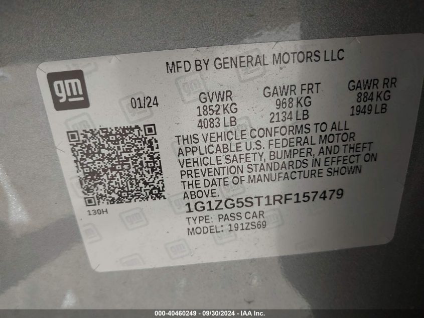 1G1ZG5ST1RF157479 - 2024 Chevrolet Malibu, Fwd Rs