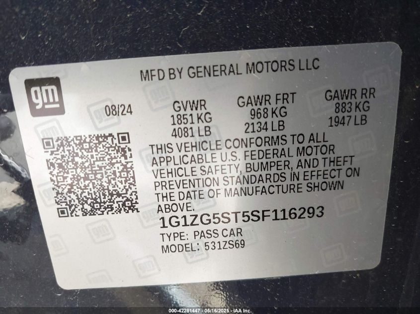 1g1zg5st5sf116293 - 2025 Chevrolet Malibu Fwd Rs 2025