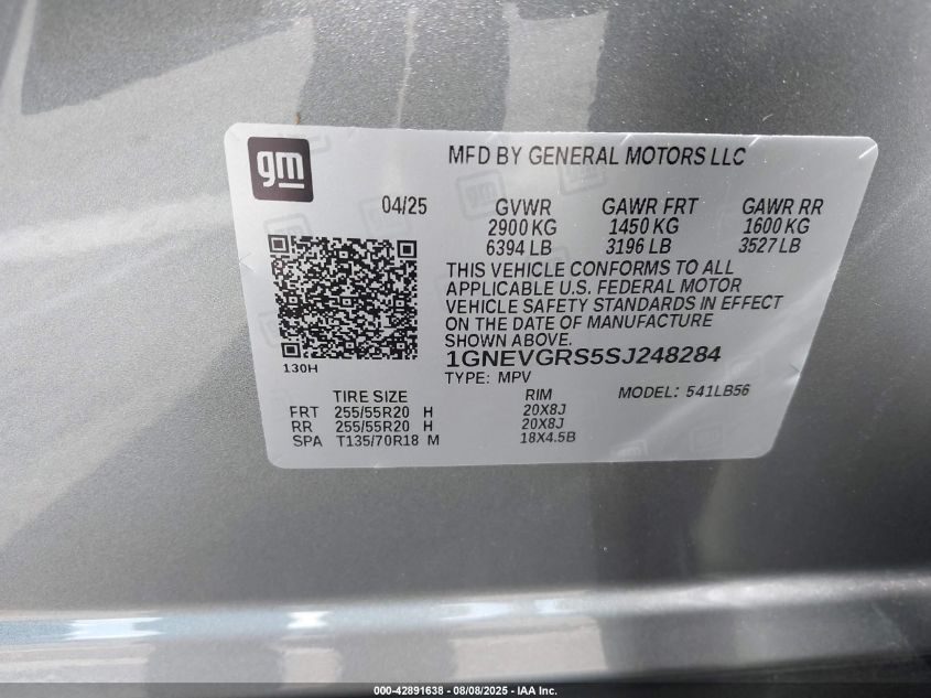 1gnevgrs5sj248284 - 2025 Chevrolet Traverse Awd Lt 2025