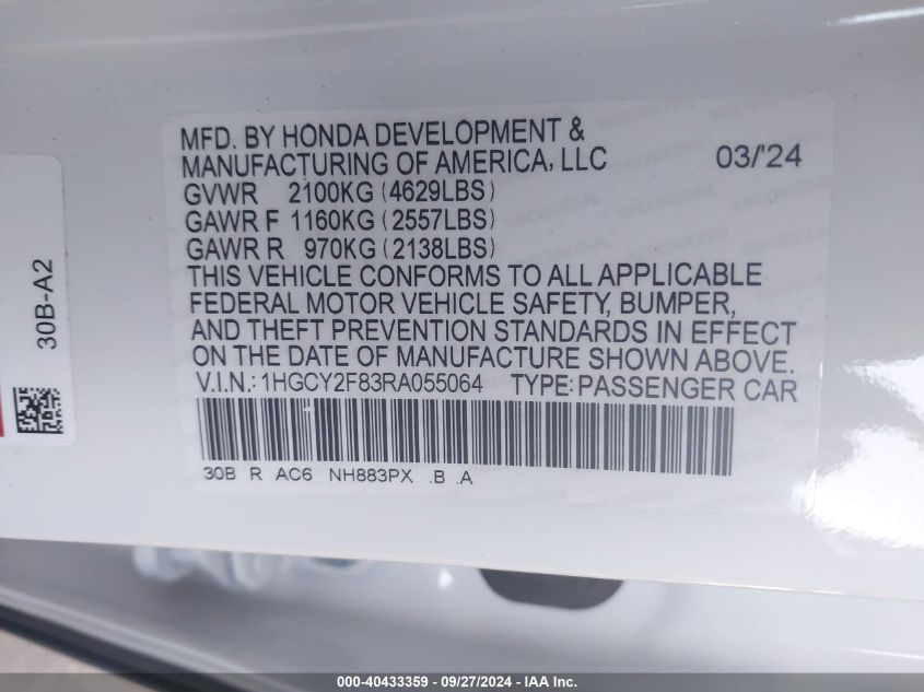 VIN:1HGCY2F83RA055064