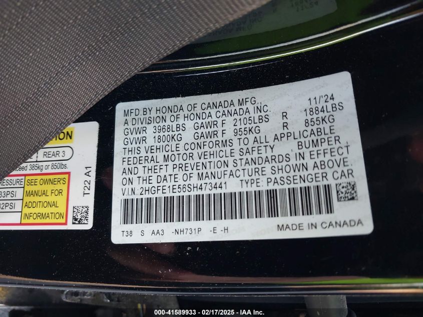 VIN:2hgfe1e56sh473441