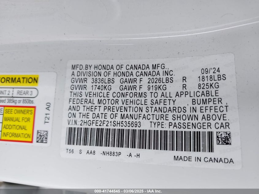 VIN:2hgfe2f21sh535693