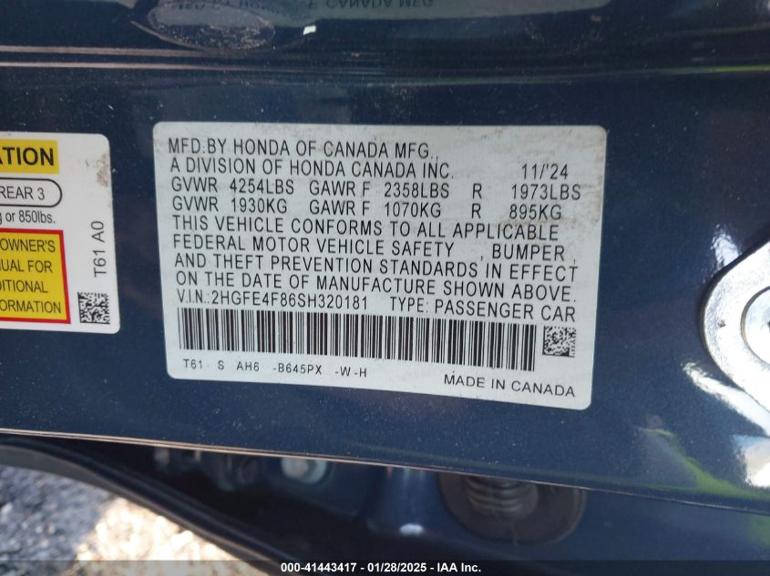2hgfe4f86sh320181 - 2025 Honda civic