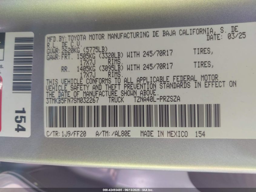 Discover this exceptional 2025 Toyota Tacoma Sr5 2wd 2025 featuring a powerful 2.4 engine and finished in Silver. This premium vehicle is currently listed at auction lot #42986202 through IAAI.