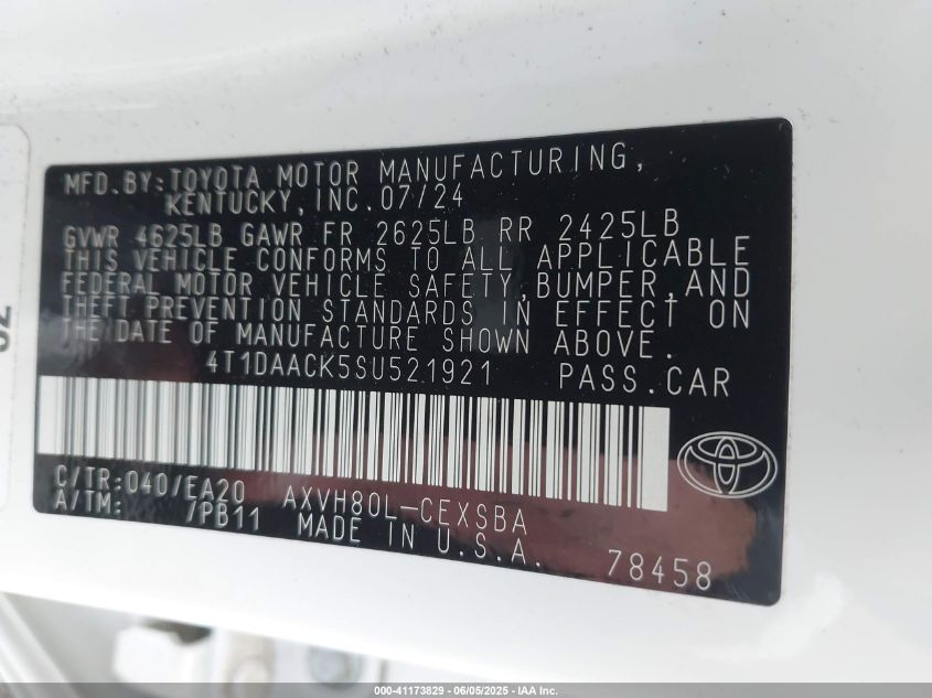 VIN:4t1daack5su521921