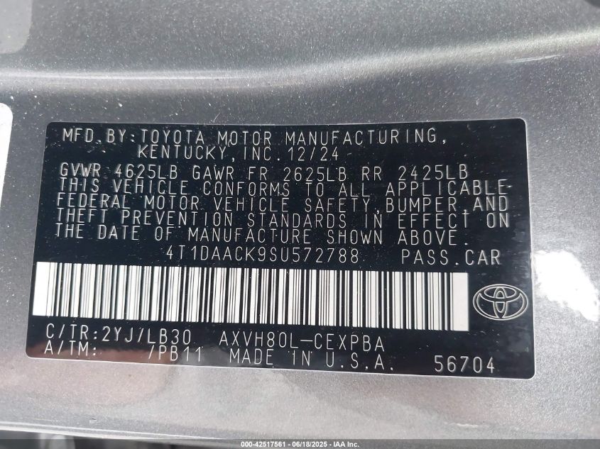4t1daack9su572788 - 2025 Toyota Camry Xse 2025