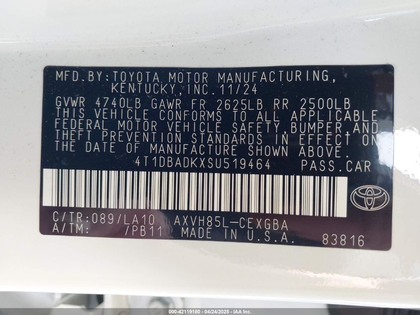 VIN:4t1dbadkxsu519464
