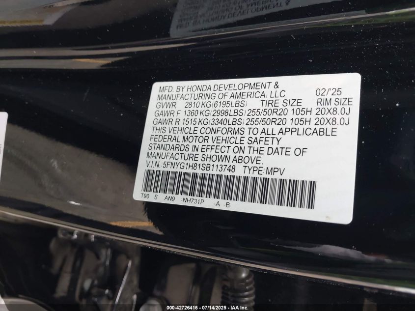 5fnyg1h81sb113748 - 2025 Honda pilot elite