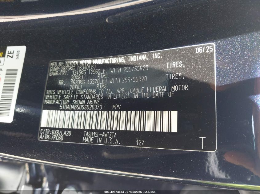 5tdadab50ss020370 - 2025 Toyota grand highlander hybrid platinum max
