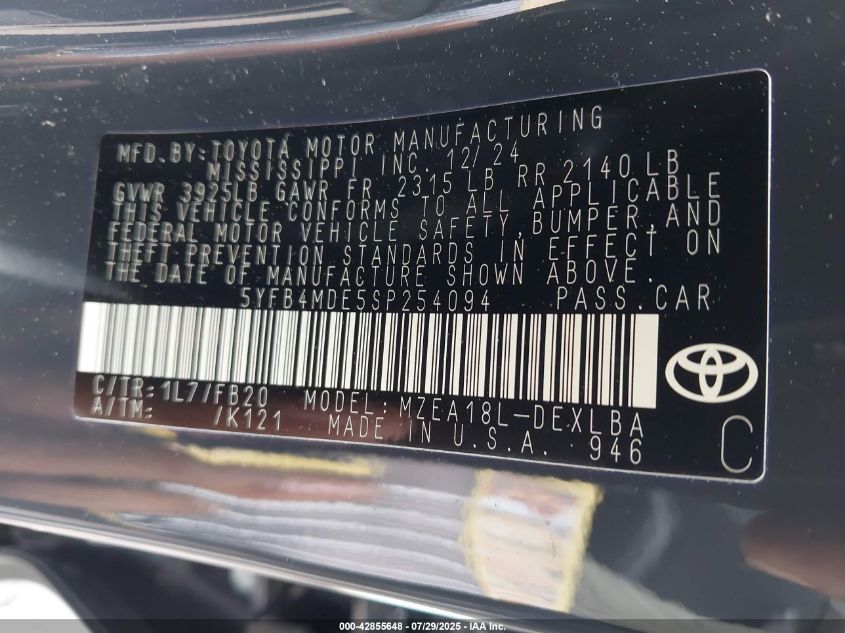 5yfb4mde5sp254094 - 2025 Toyota Corolla Le 2025