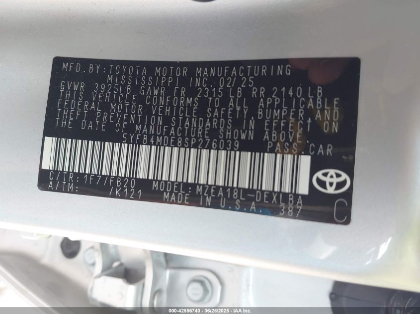 5yfb4mde8sp276039 - 2025 Toyota Corolla Le 2025