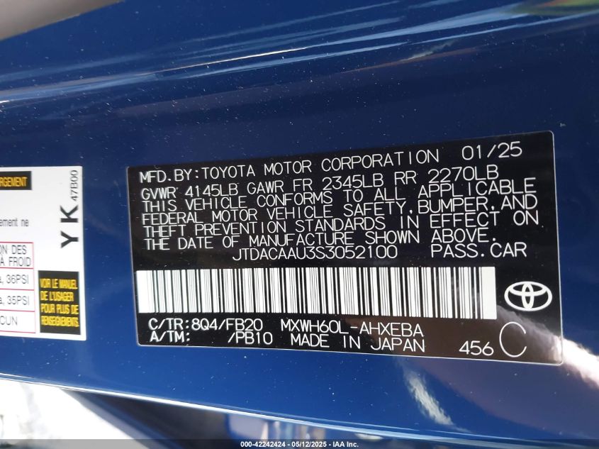 VIN:jtdacaau3s3052100