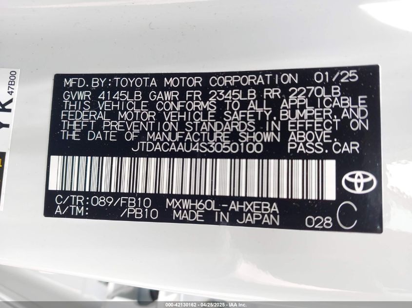 jtdacaau4s3050100 - 2025 Toyota prius le