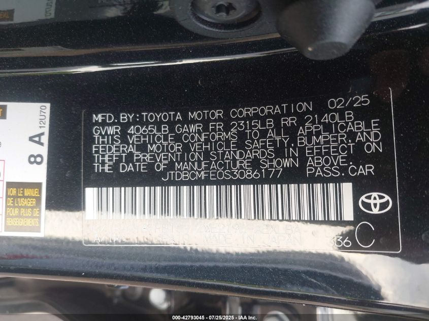 VIN:jtdbcmfe0s3086177