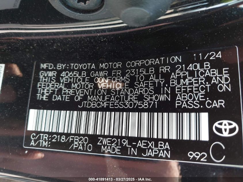 VIN:jtdbcmfe5s3075871