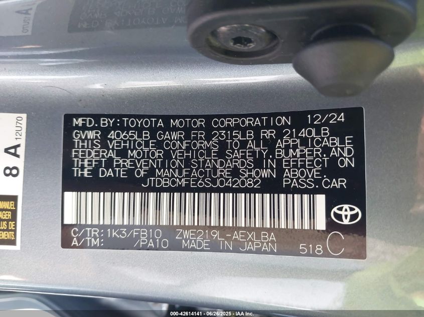 jtdbcmfe6sj042082 - 2025 Toyota corolla hybrid le