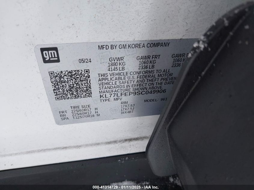 VIN:kl77lfep9sc049906