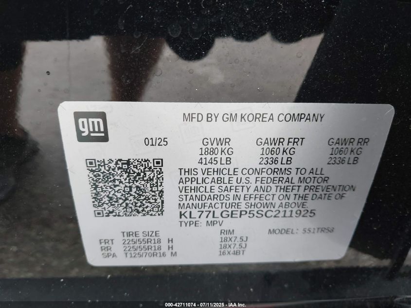 VIN:kl77lgep5sc211925