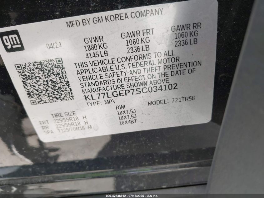 VIN:kl77lgep7sc034102