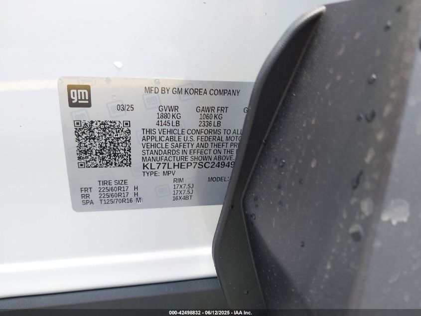 kl77lhep7sc249498 - 2025 Chevrolet Trax Fwd Lt 2025
