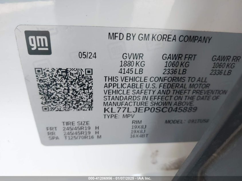 VIN:kl77ljep0sc045889