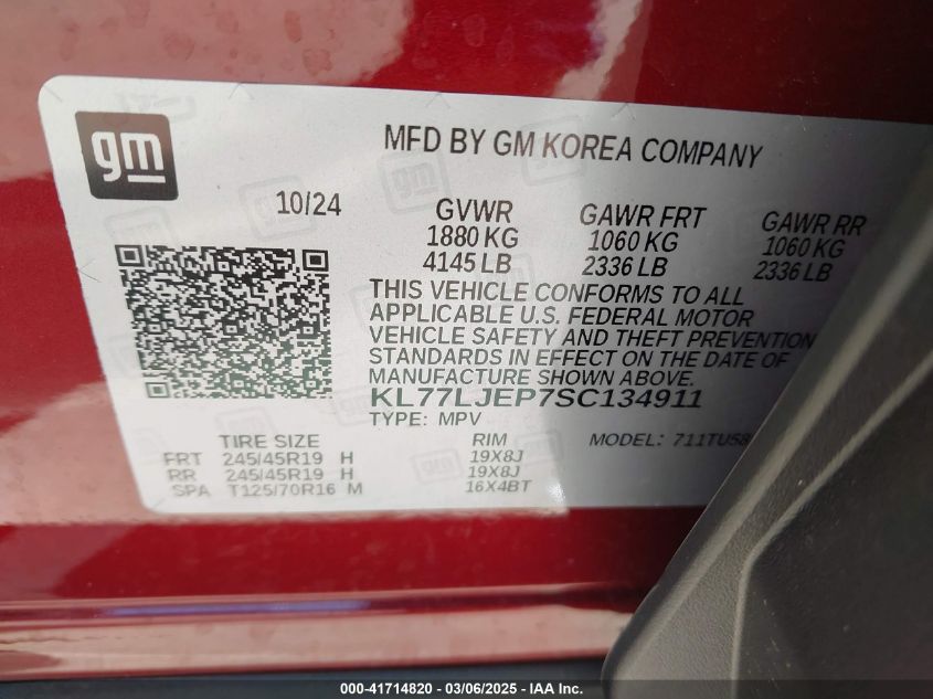 VIN:kl77ljep7sc134911