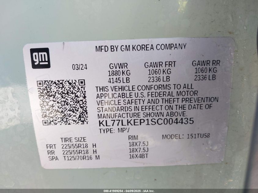 VIN:kl77lkep1sc004435