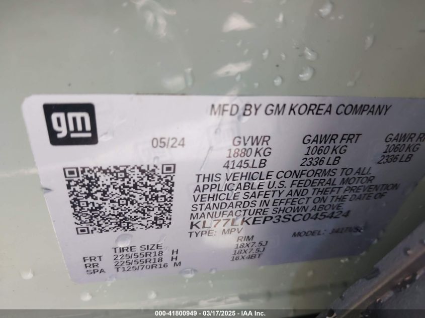 VIN:kl77lkep3sc045424