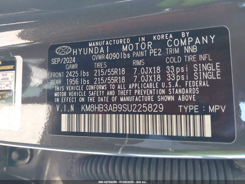 km8hb3ab9su225829 - 2025 Hyundai kona sel