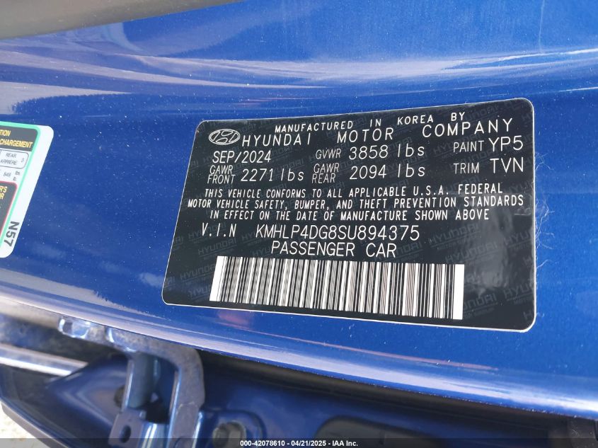 kmhlp4dg8su894375 - 2025 Hyundai Elantra Limited 2025