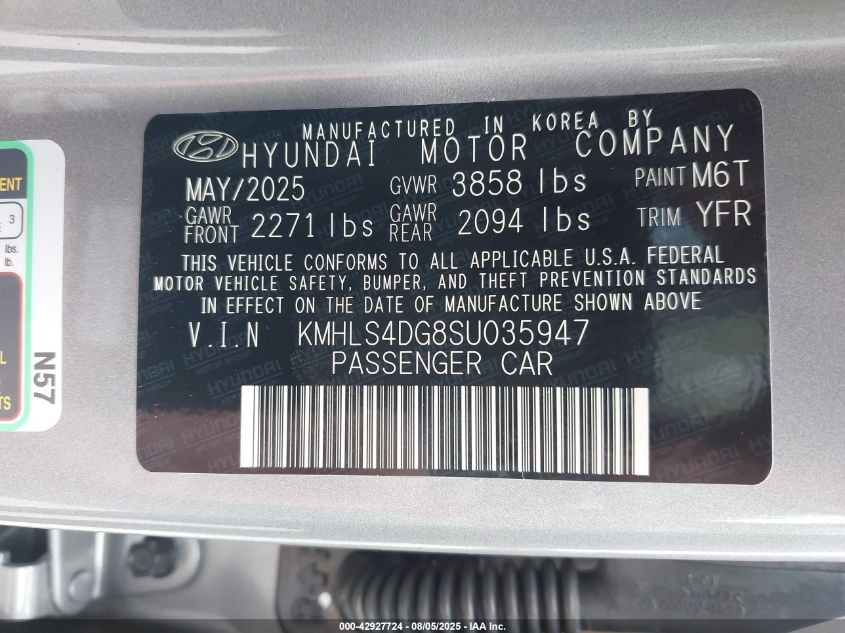 kmhls4dg8su035947 - 2025 Hyundai Elantra Sel Convenience 2025
