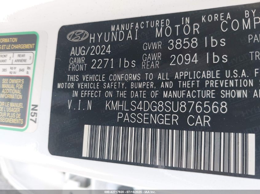 kmhls4dg8su876568 - 2025 Hyundai Elantra Sel Convenience 2025